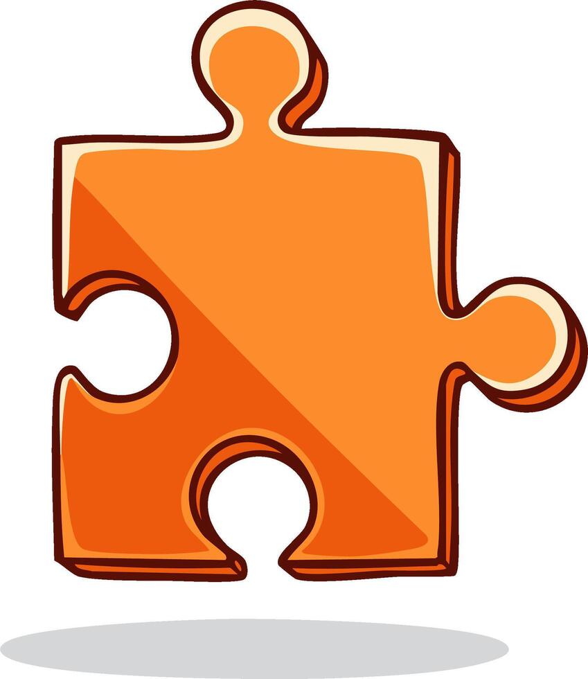 Isolated single orange jigsaw puzzle piece with a hand-drawn cartoon style, concept of problem solving and teamwork Pro Vector