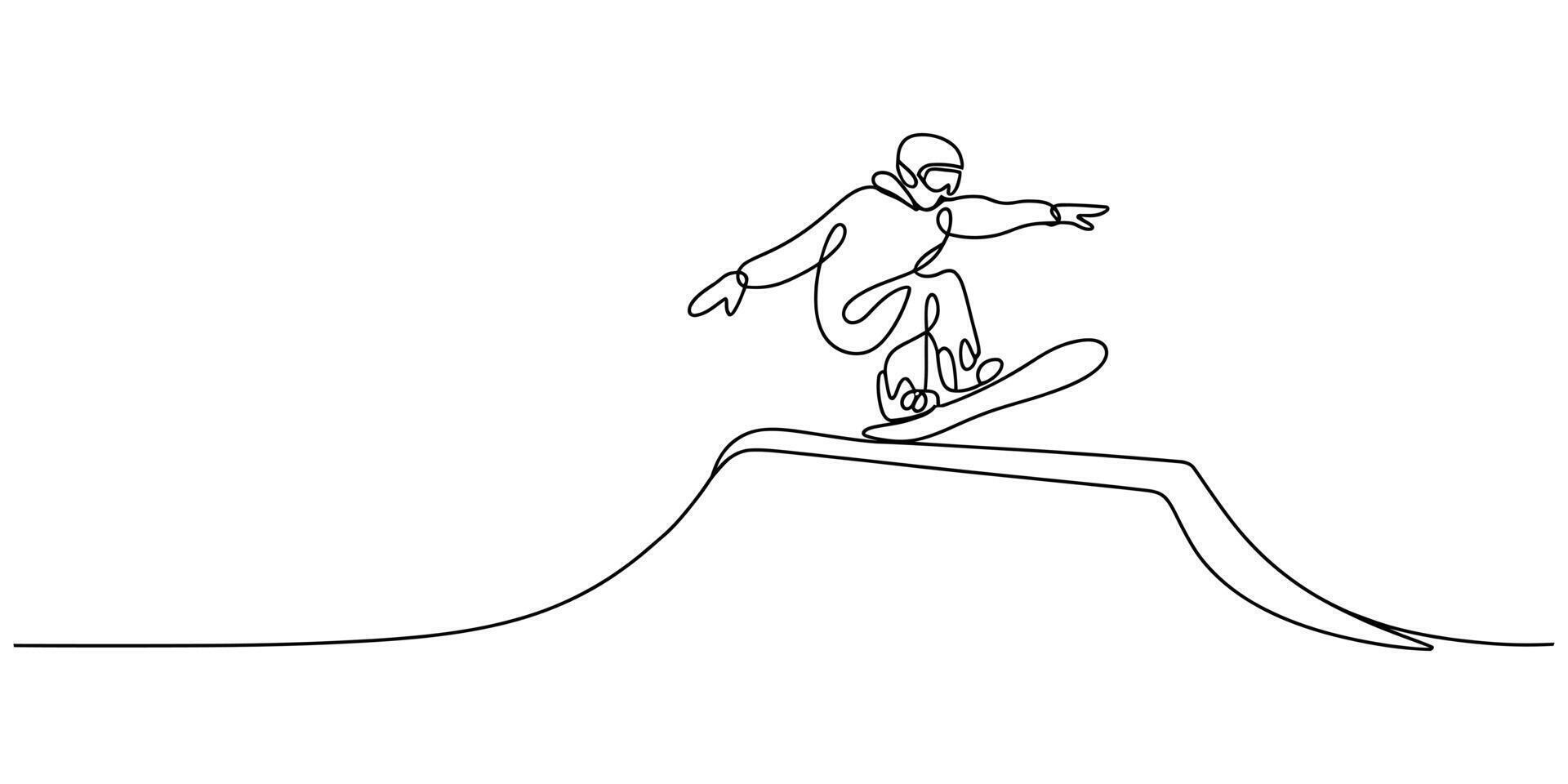 Dynamic continuous line drawing of a snowboarder performing a jump Pro Vector