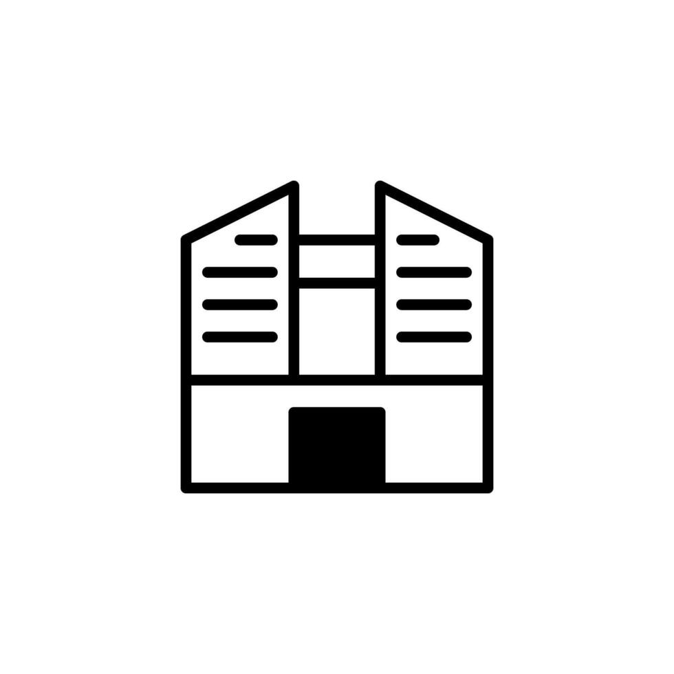 Minimalist architectural outline presents a modern building with geometric shapes and clean line vector