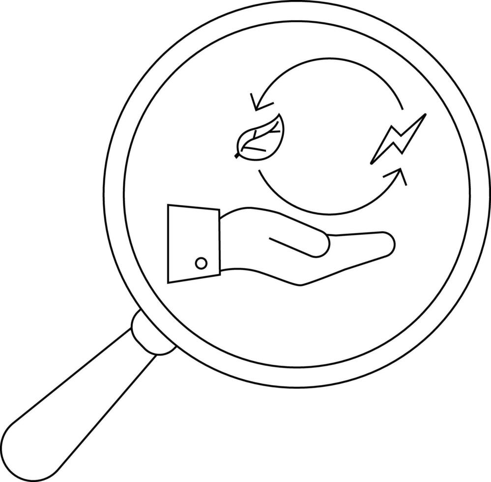 Hand under loop with leaf lightning bolt viewed through magnifying glass vector