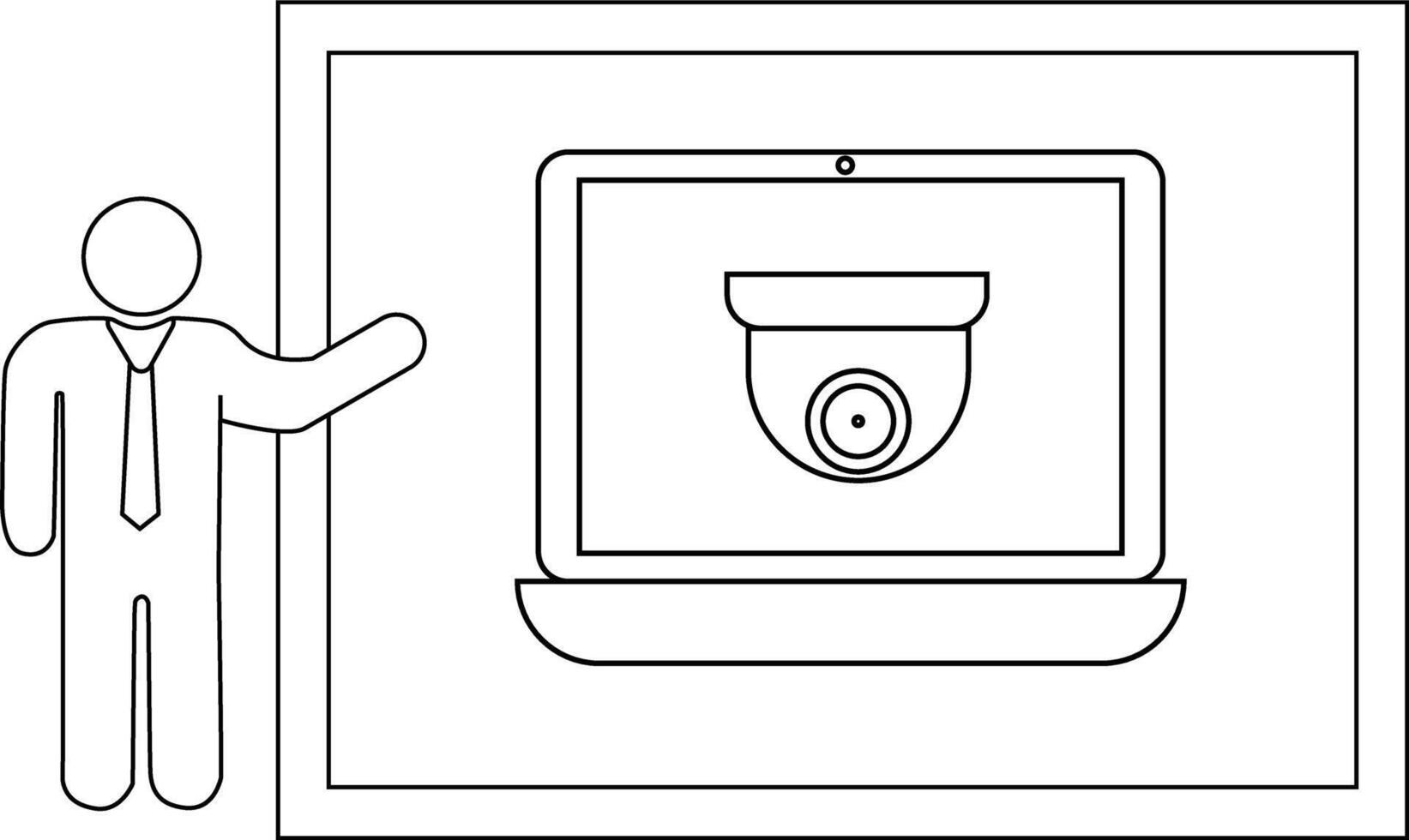 Outline shows figure gesturing to laptop displaying security camera in frame vector