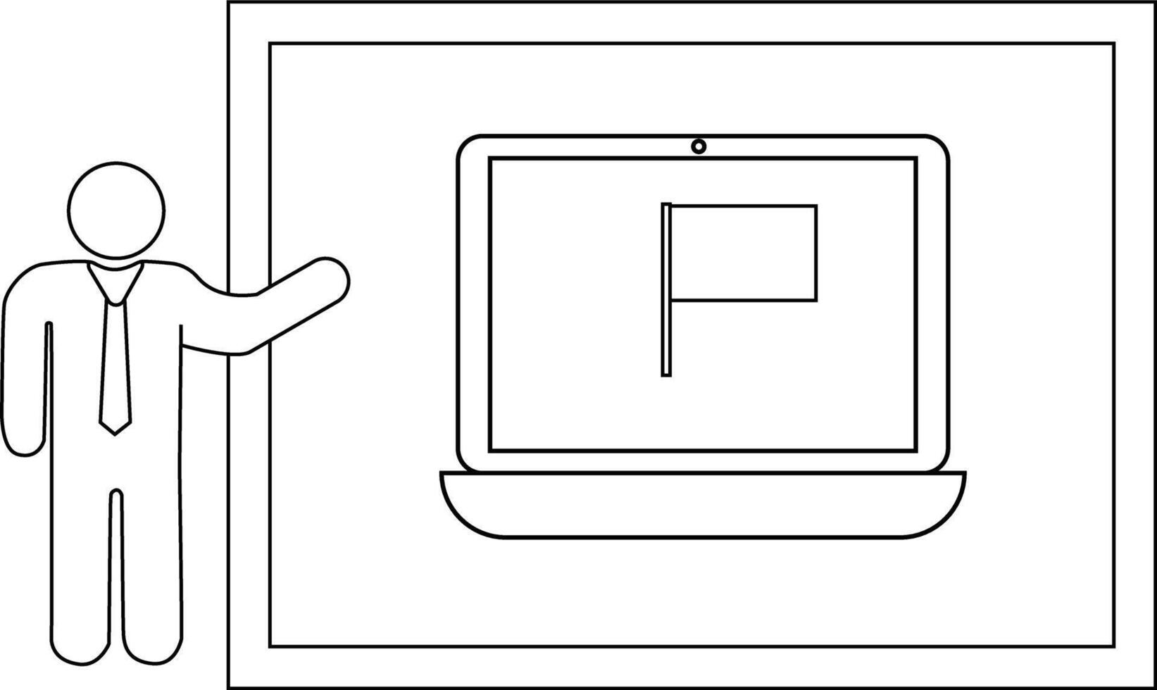A stick figure points to a screen showing a flag all within a rectangular frame vector