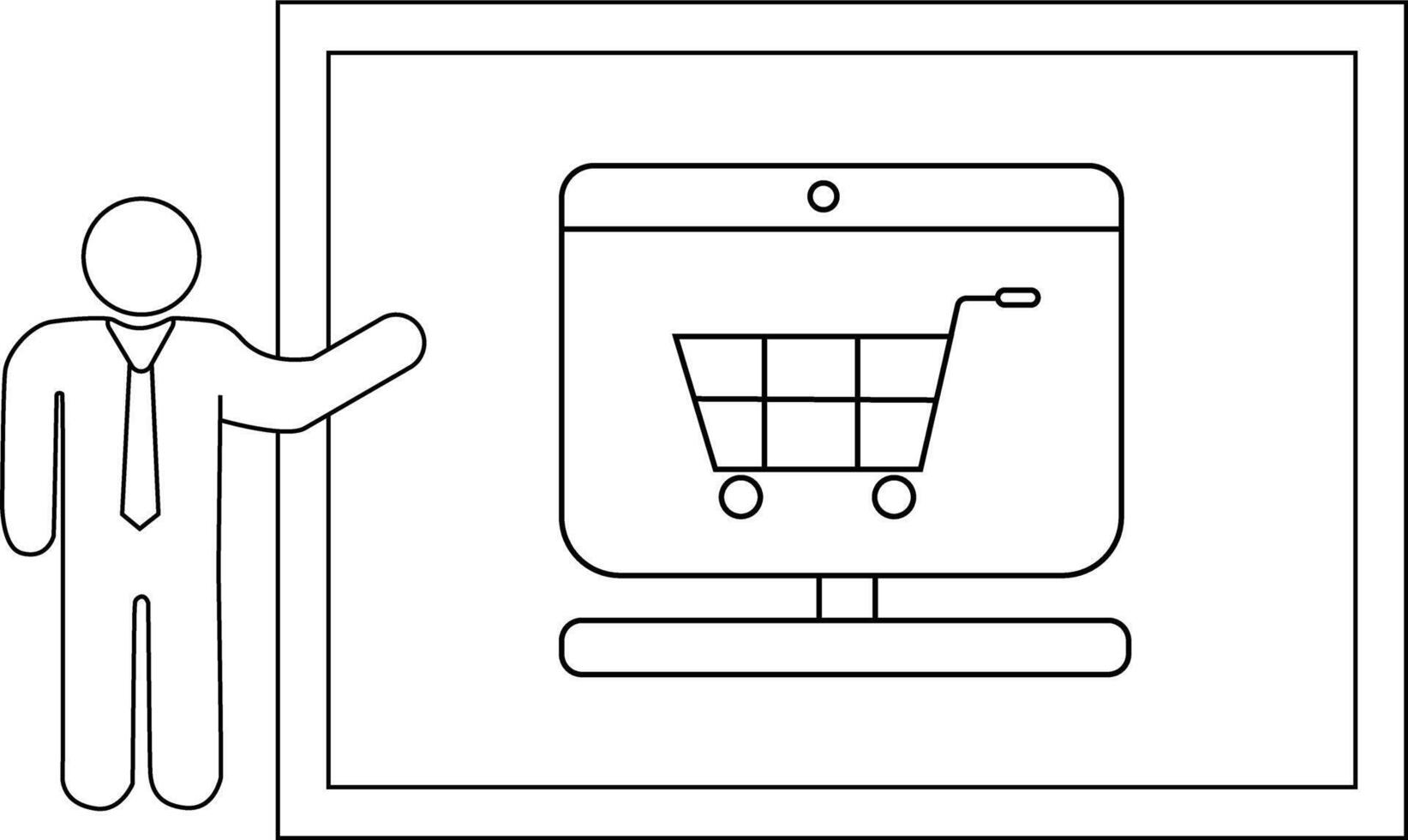 Figure pointing to screen displaying a shopping cart vector