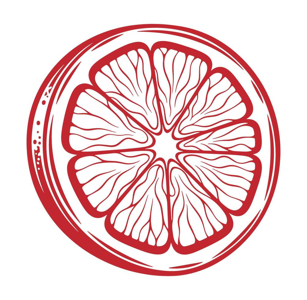 Artistic illustration of a red grapefruit slice isolated on a white background for design projects. Pro Vector