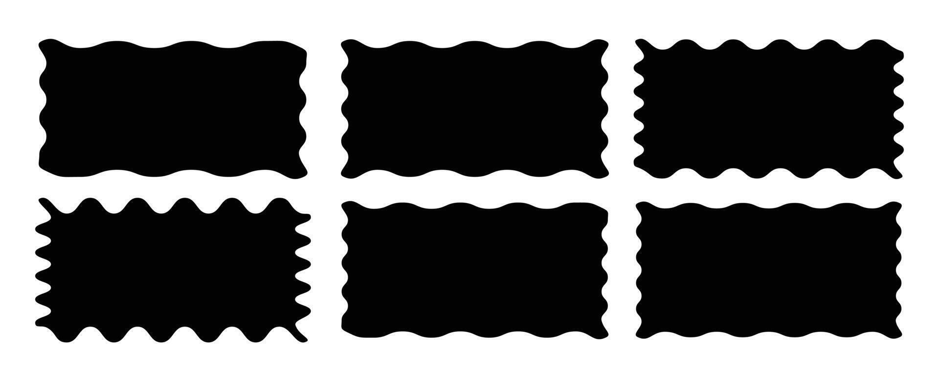 Rectangle wavy frame border shape set. Set of black wavy rectangle frame Pro Vector