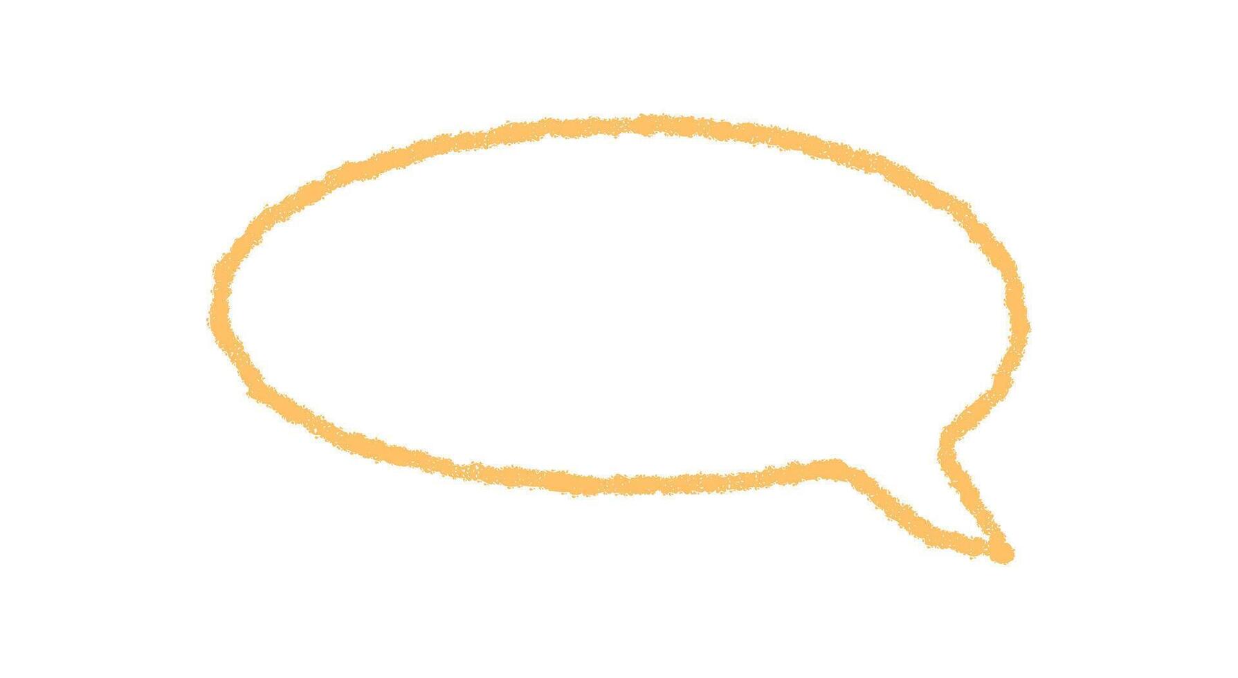 Hand drawn crayon speech bubble outline in round organic form. Orange balloon icon with text and chat message look. Simple talk shape for communication, rectangle and bubble style background. Pro Vector