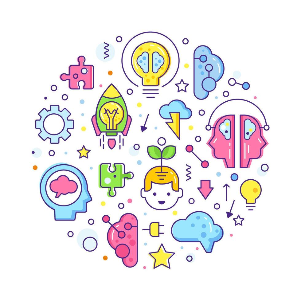 Brain and Creative Mind Design with Line Icon Arranged in Circle Template Pro Vector