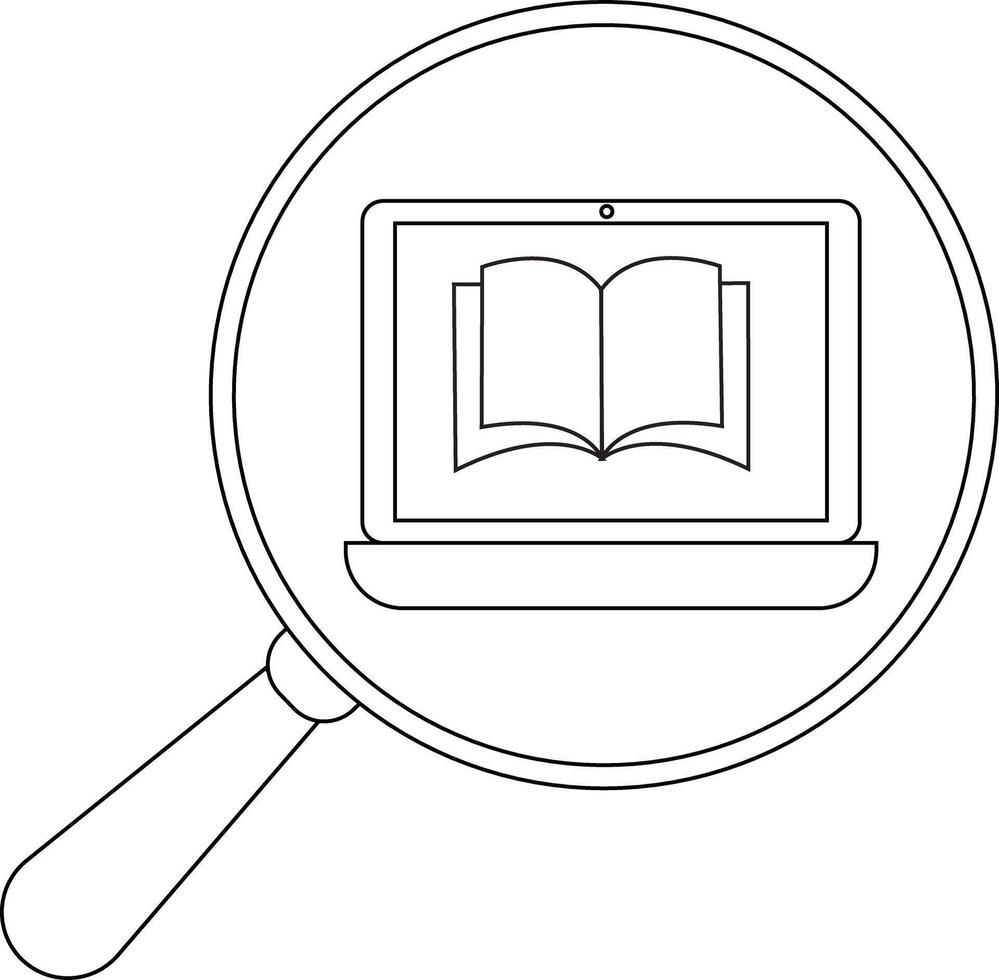 A magnifying glass focuses on a laptop displaying an open book on its screen vector