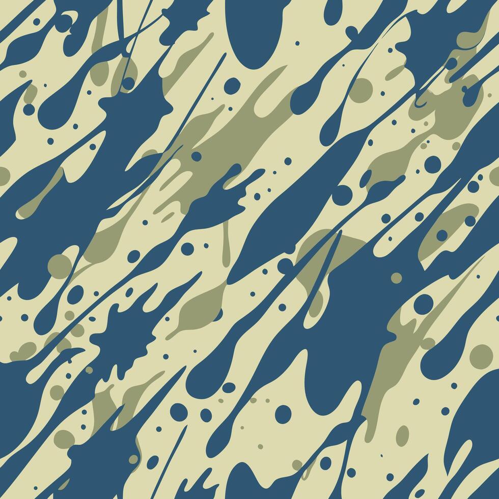 Dynamic camouflage pattern with blue and beige paint splatters creates a unique texture Pro Vector