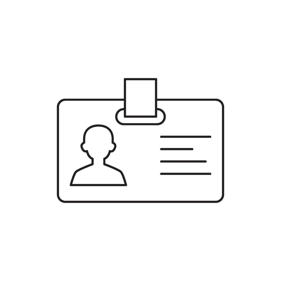 Outline icon of a personnel identification card with a profile silhouette and lines for text, on a white background Pro Vector