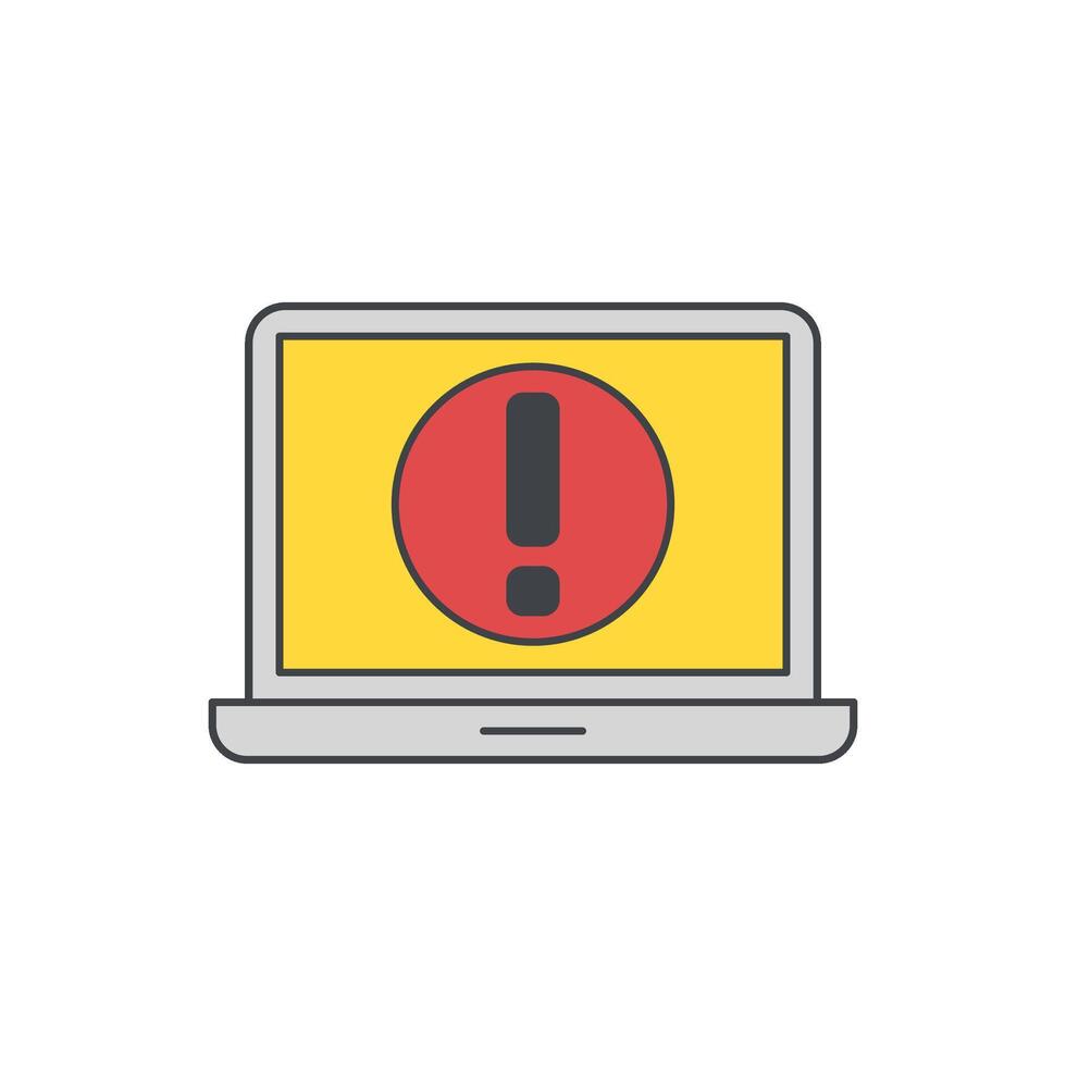 Illustration of a laptop displaying a warning symbol on its screen, representing an error or alert Pro Vector