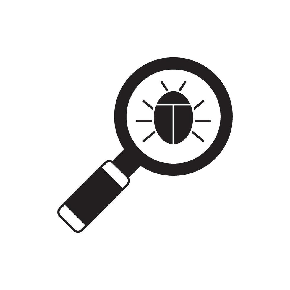 Magnifying glass examining a stylized insect icon, representing software debugging or pest control Pro Vector