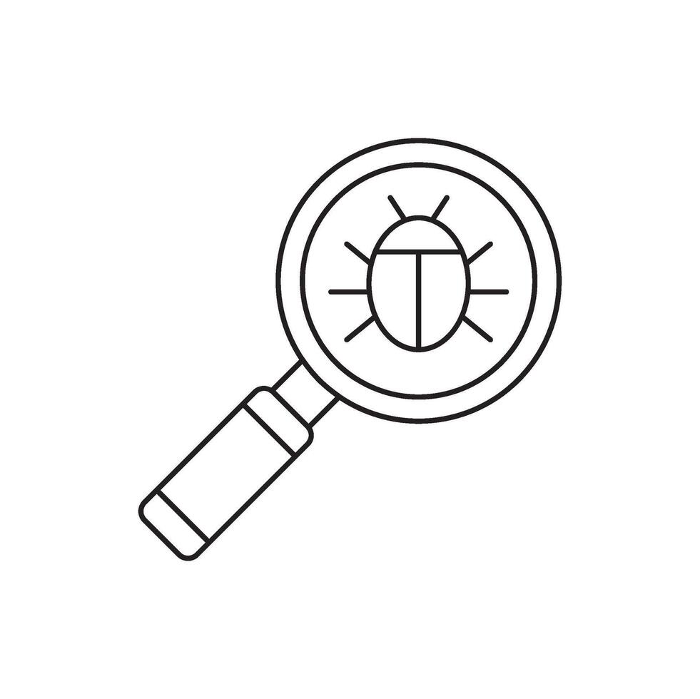 Magnifying glass over a stylized insect, symbolizing bug detection and investigation Pro Vector