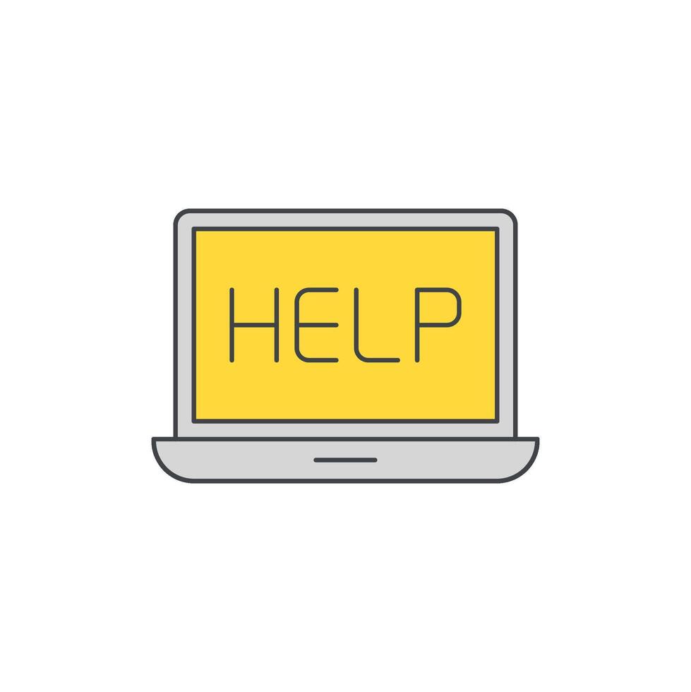 Digital Assistance Laptop Screen Displaying the Word HELP, Symbolizing Support and Guidance Pro Vector