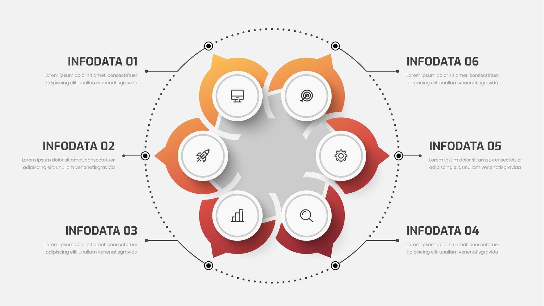 Gradient Infographic Presentation with Circle Label, Line, Six Option and Icons Pro Vector