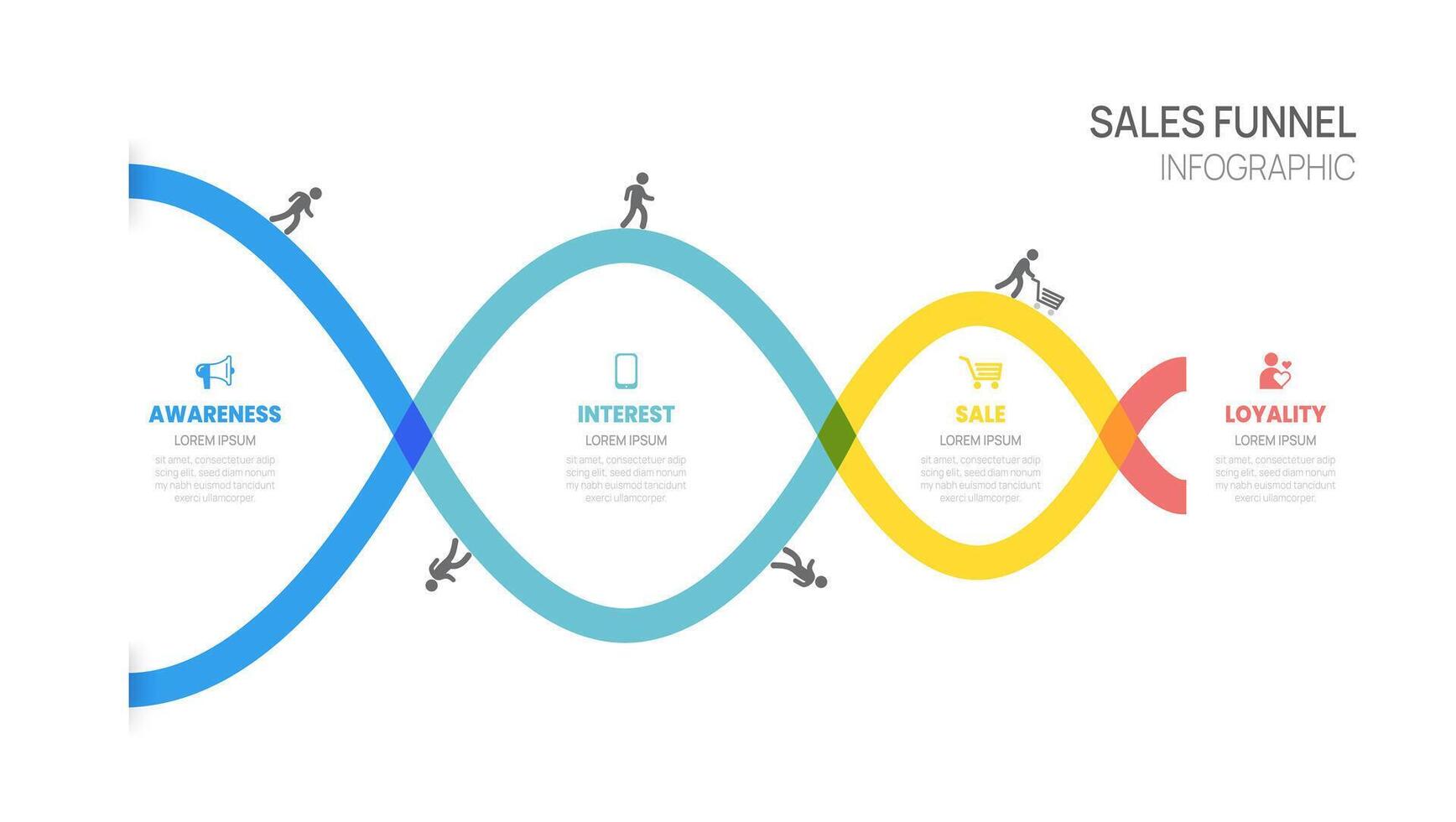 Sales funnel Infographic diagram template for business. Modern Timeline 4 steps Tunnel line, presentation. Pro Vector