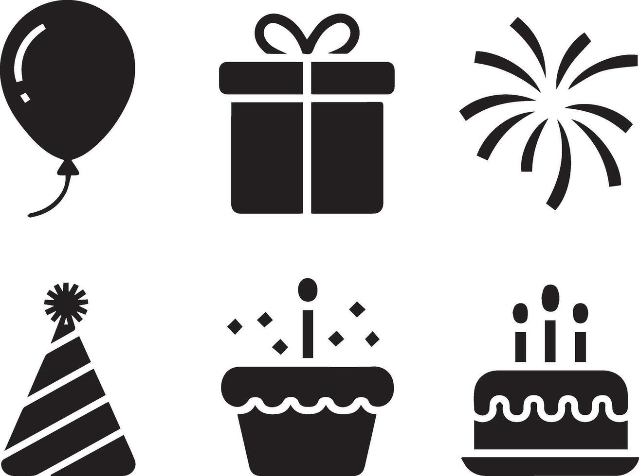 Festive Elements Collection Cake, Balloon, and Exploding Firework. Pro Vector