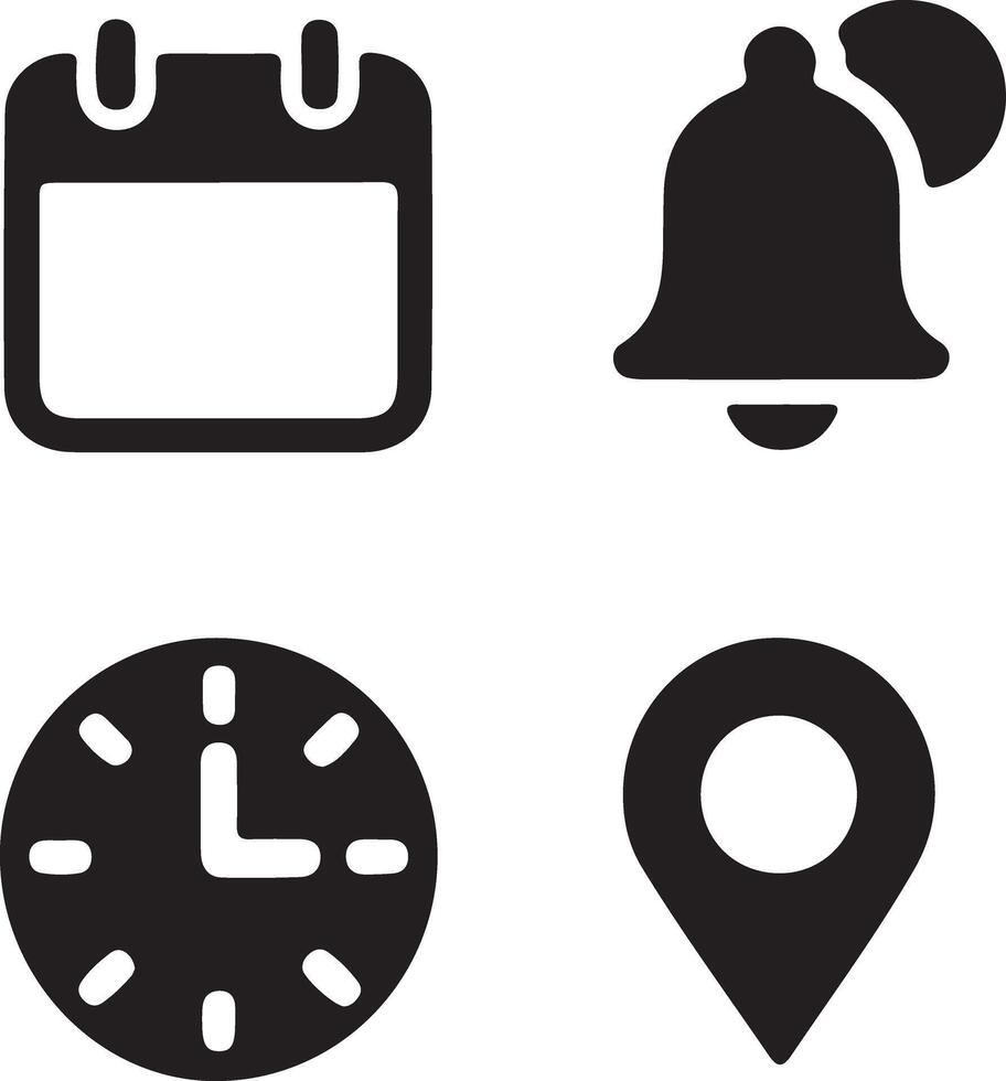 Four simple transparent icons representing calendar notification clock and location Pro Vector