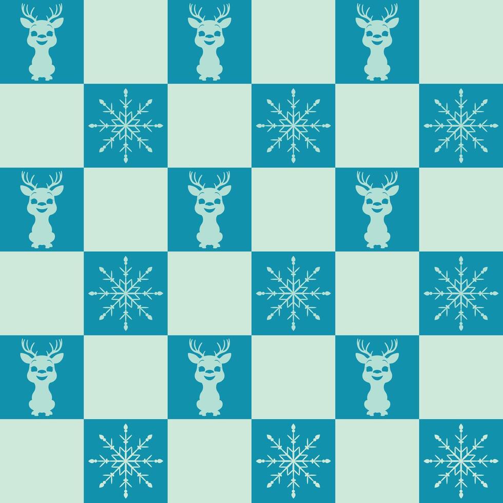 Seamless repeating pattern with deer and snowflakes. Endless checkerboard Christmas pattern. Repeating checkerboard pattern with Christmas elements. Pattern for wrapping paper Pro Vector