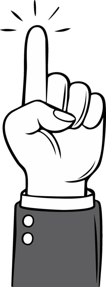 Cartoon hand with index finger pointing up indicating selection attention or a bright idea. Simple illustration of a professional hand gesture Pro Vector
