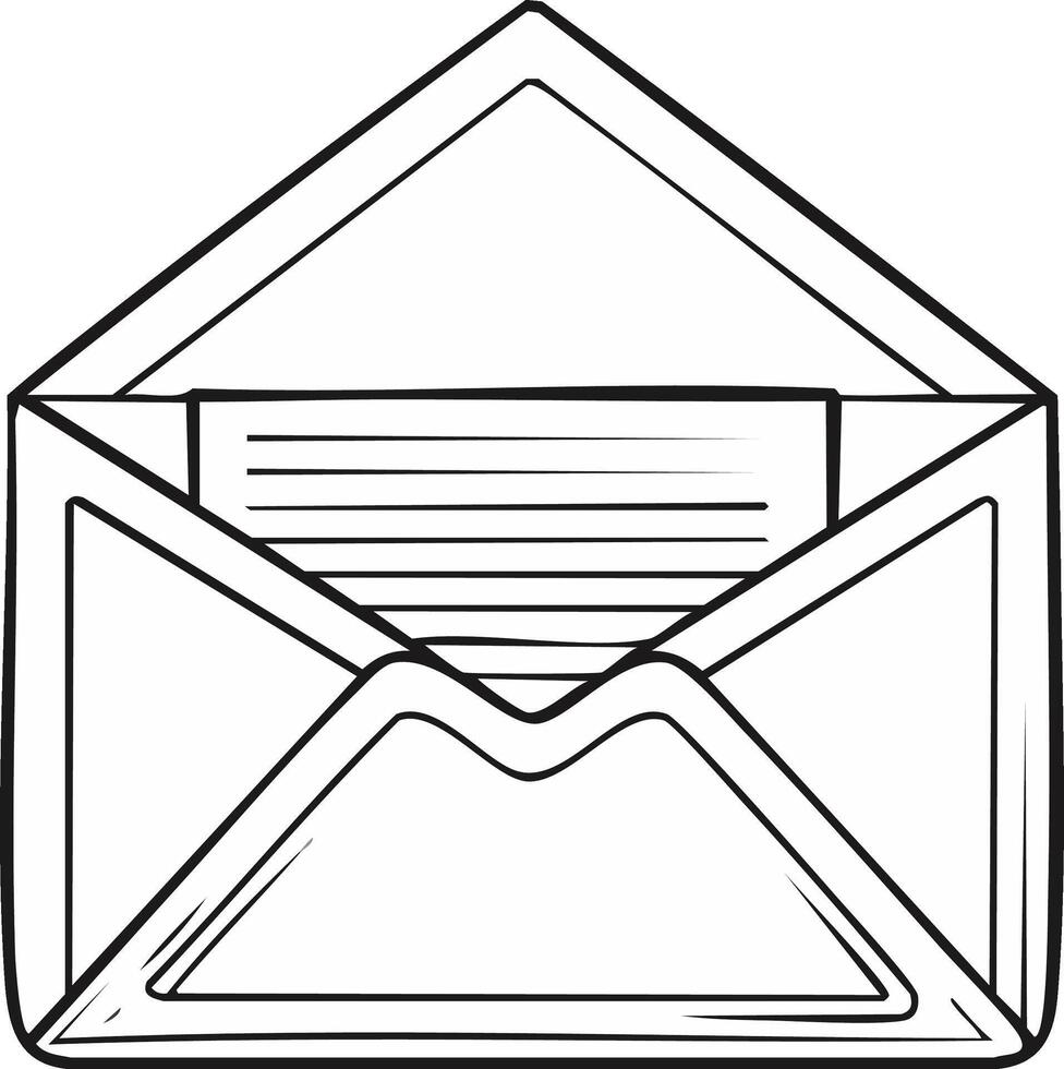 Hand drawn illustration of an open envelope with paper inside showing lines Pro Vector