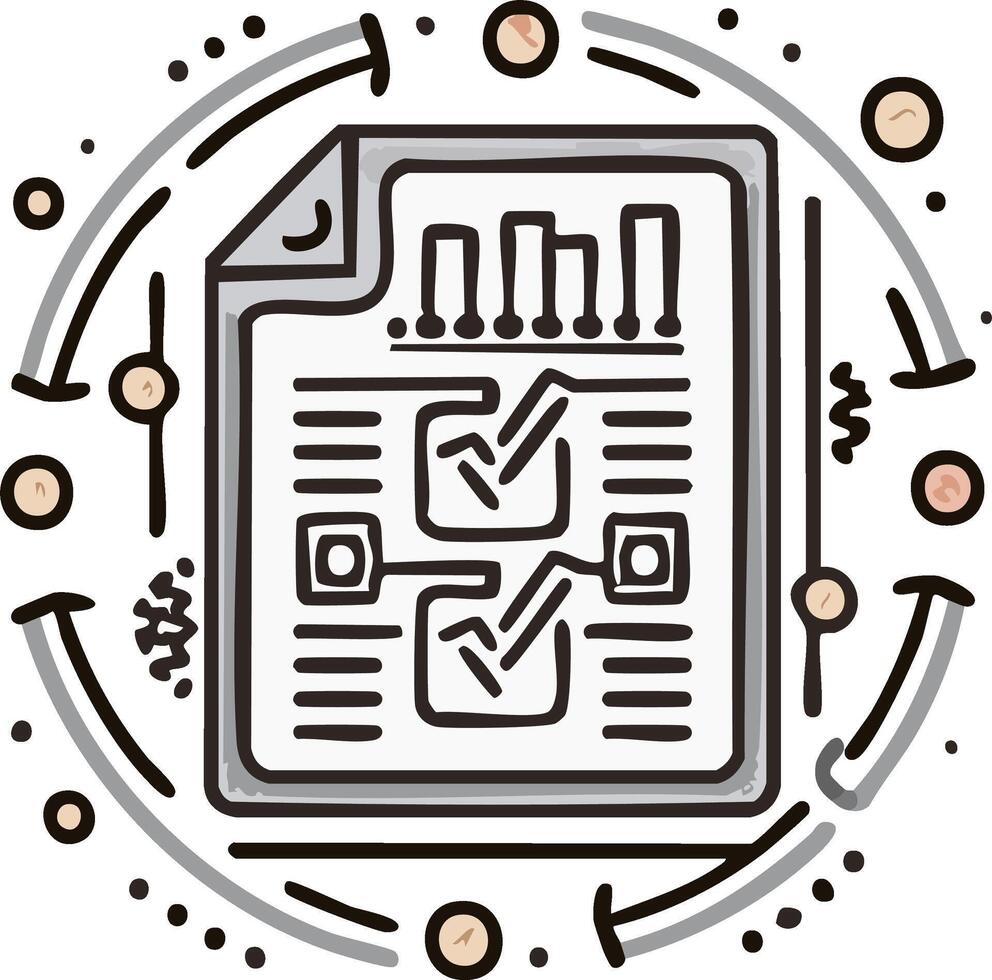 Hand-drawn checklist diagram with progress bars and circular arrows indicating process Pro Vector
