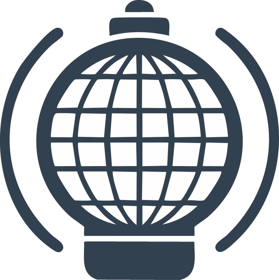 Lightbulb with globe grid icon representing global ideas, innovation, and worldwide connection Pro Vector
