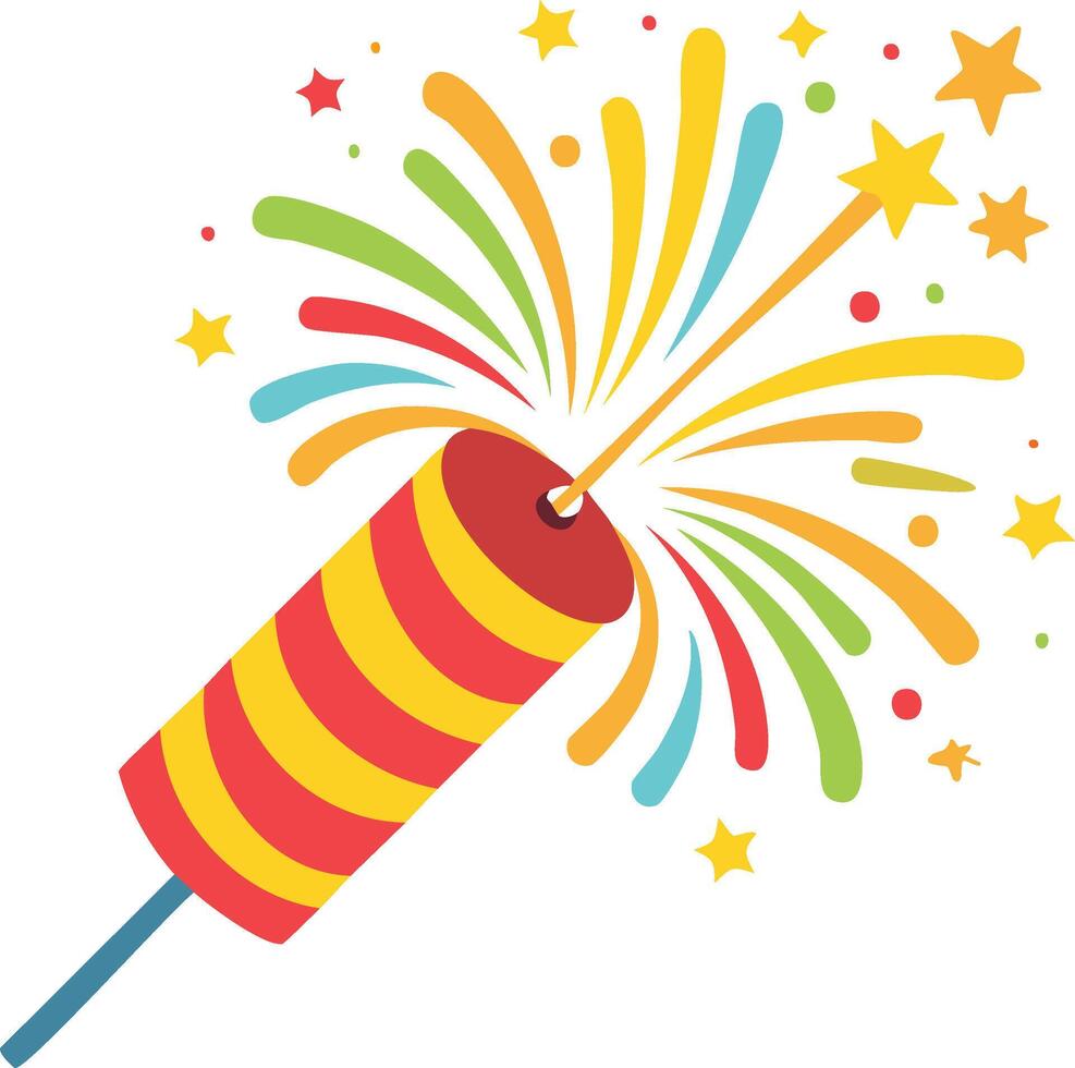 Cartoon-styled Firecracker Exploding with Stars and Streamers Pro Vector