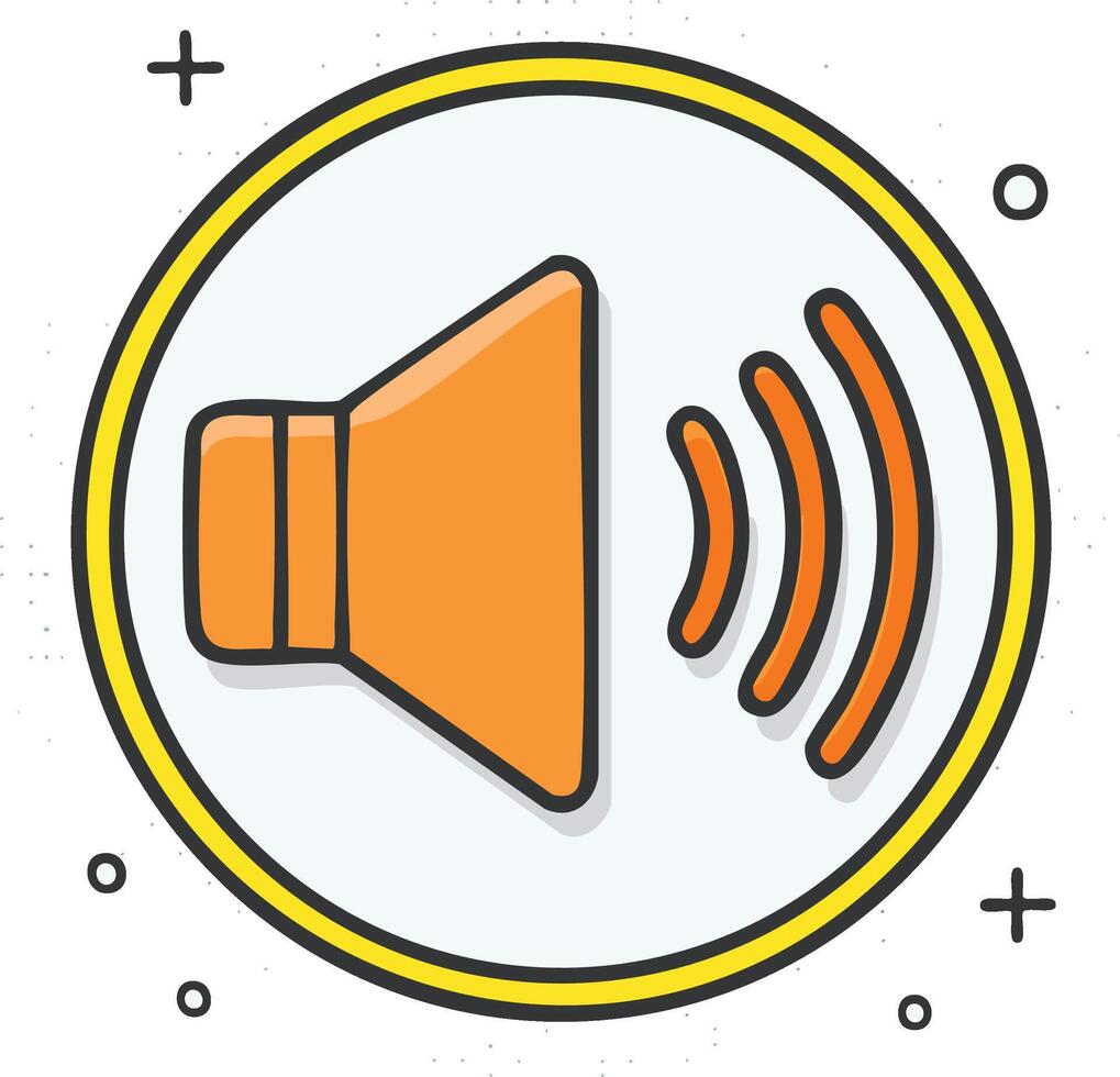 Loudspeaker symbol with active sound waves in bright yellow bordered circle Pro Vector