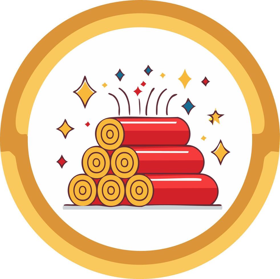 Festive Firecrackers Stack with Sparkling Stars and Explosion Effect Icon Illustration Pro Vector