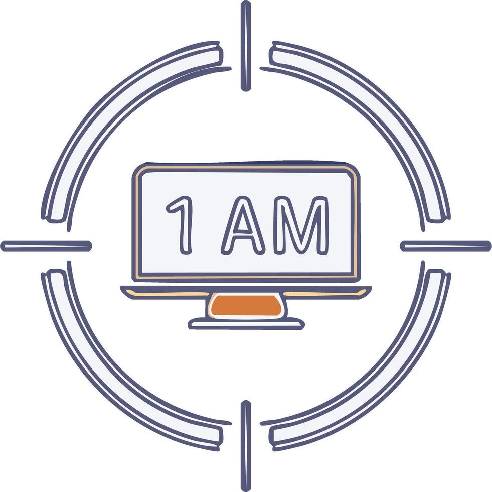 Online until 1AM displayed on a Computer Screen inside of Target Icon Pro Vector
