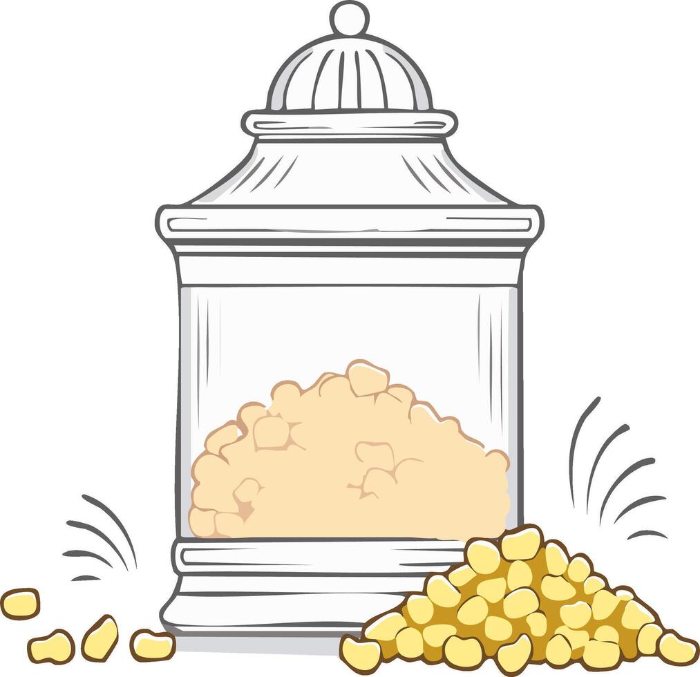 Glass Jar Filled with Popcorn Kernels and Scattered Kernels Beside Pro Vector