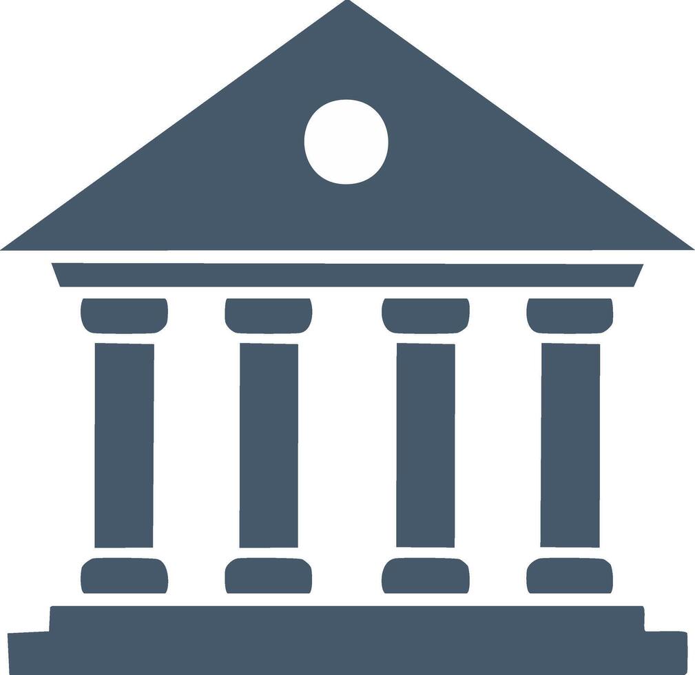 Classical building icon with columns and triangular roof representing government law education finance Pro Vector