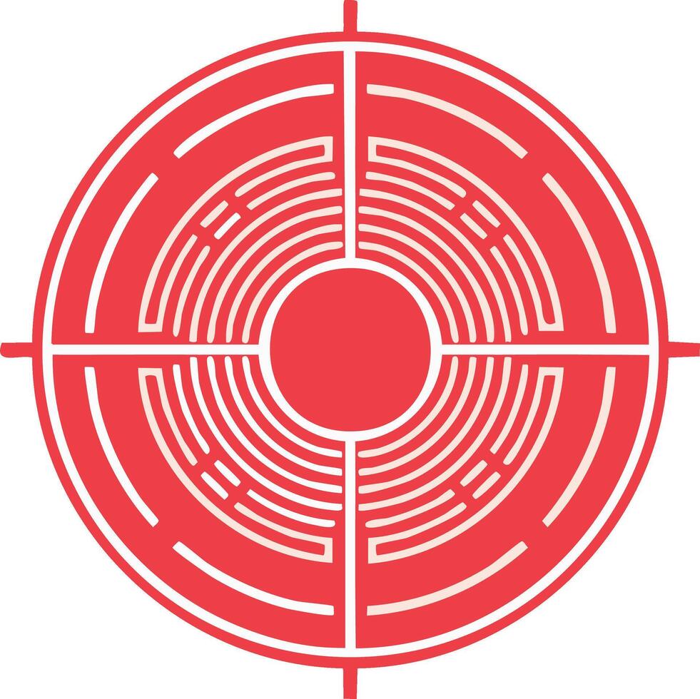 Red circular maze target with crosshairs, abstract concept of focus and navigation Pro Vector