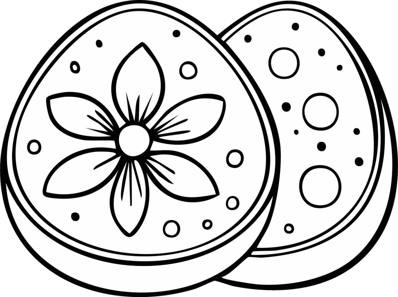 Outline drawing of two sliced citrus fruits with seeds and pulp, one with a flower pattern Pro Vector