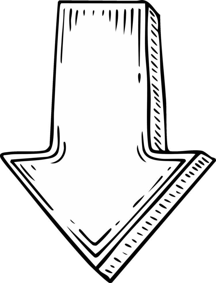 Hand drawn down arrow graphic with simple sketch lines and shading Pro Vector