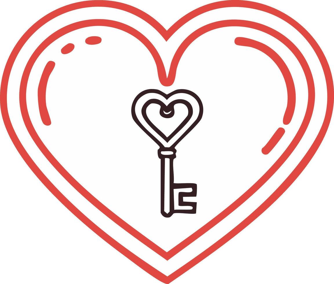 Heart shape with key symbol in red outline, design element for love and relationships concepts Pro Vector