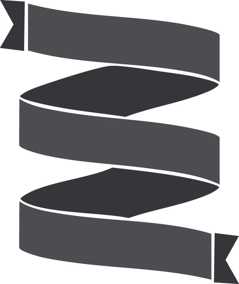 Curving dark gray ribbon banner with triangular ends, abstract graphic design element Pro Vector