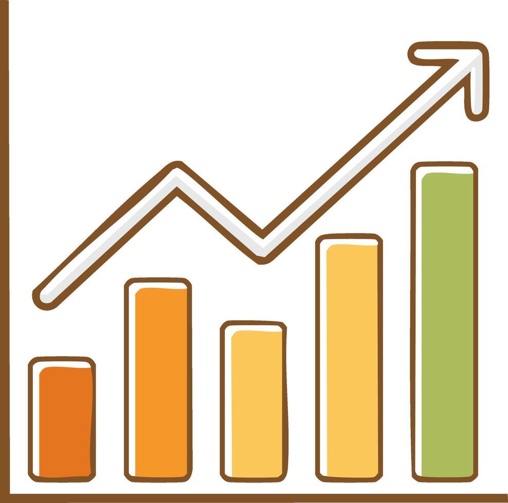 Stylized Bar Graph Chart Showing Increasing Trends and Growth with Arrow Visual Pro Vector