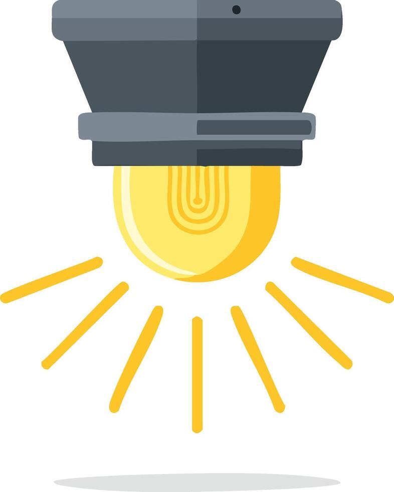 Bright glowing ceiling light fixture with yellow bulb illuminating space an idea or solution concept Pro Vector