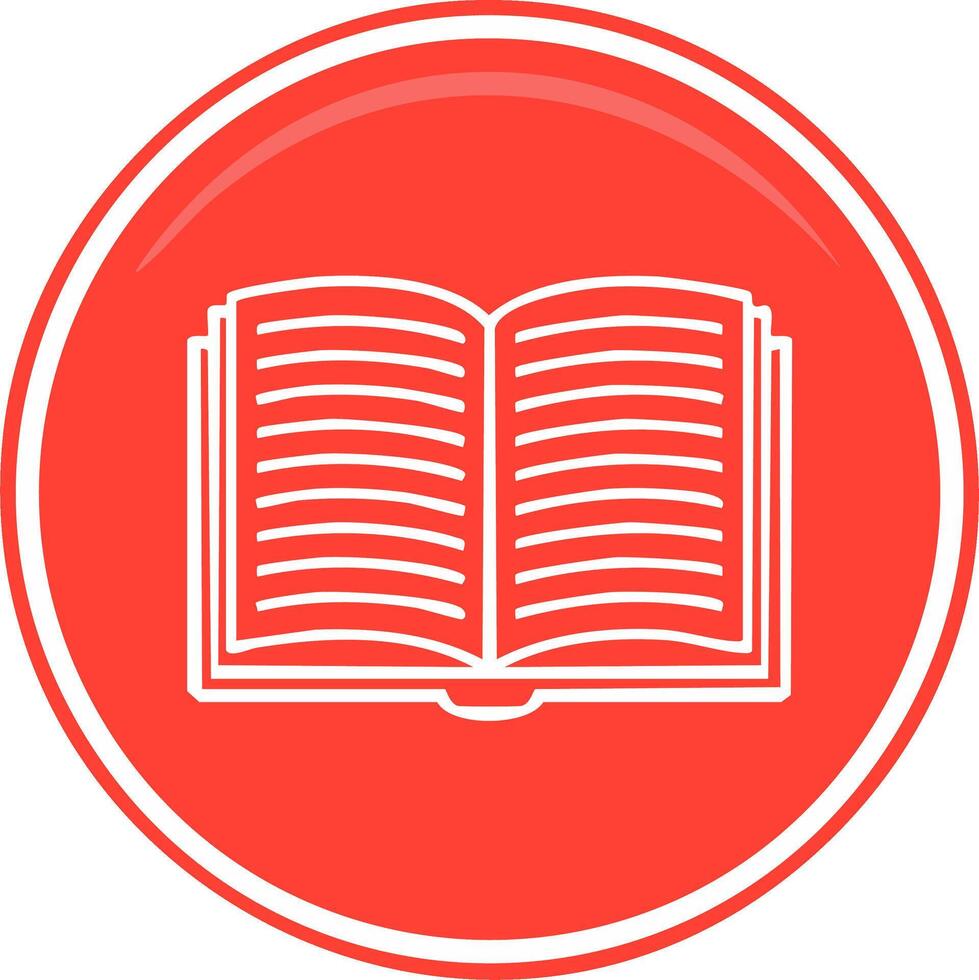 Open book icon inside a red circle with a white outline. Conceptual symbol of knowledge and learning Pro Vector