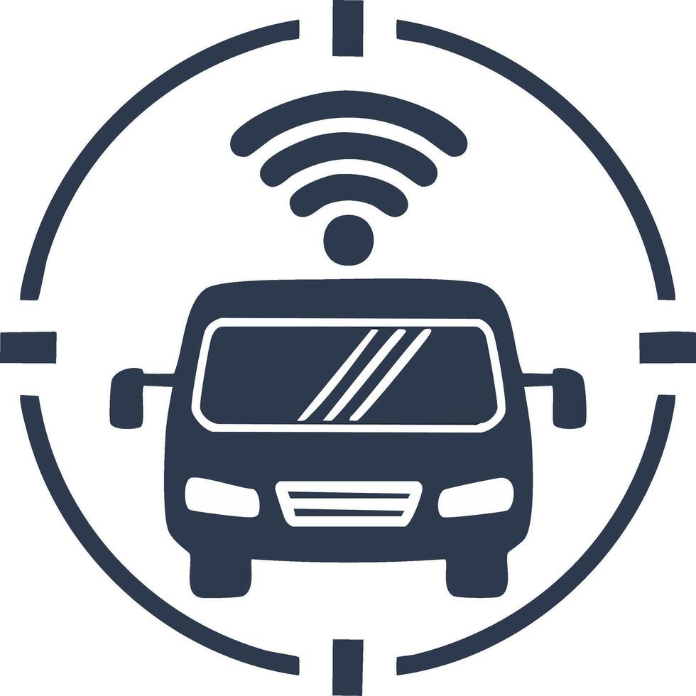 Autonomous vehicle icon with Wi-Fi signal and target crosshairs, illustrating connectivity and navigation Pro Vector