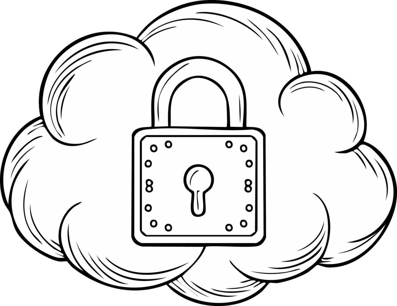 Cloud computing security concept with padlock, data protection technology illustration, outline Pro Vector