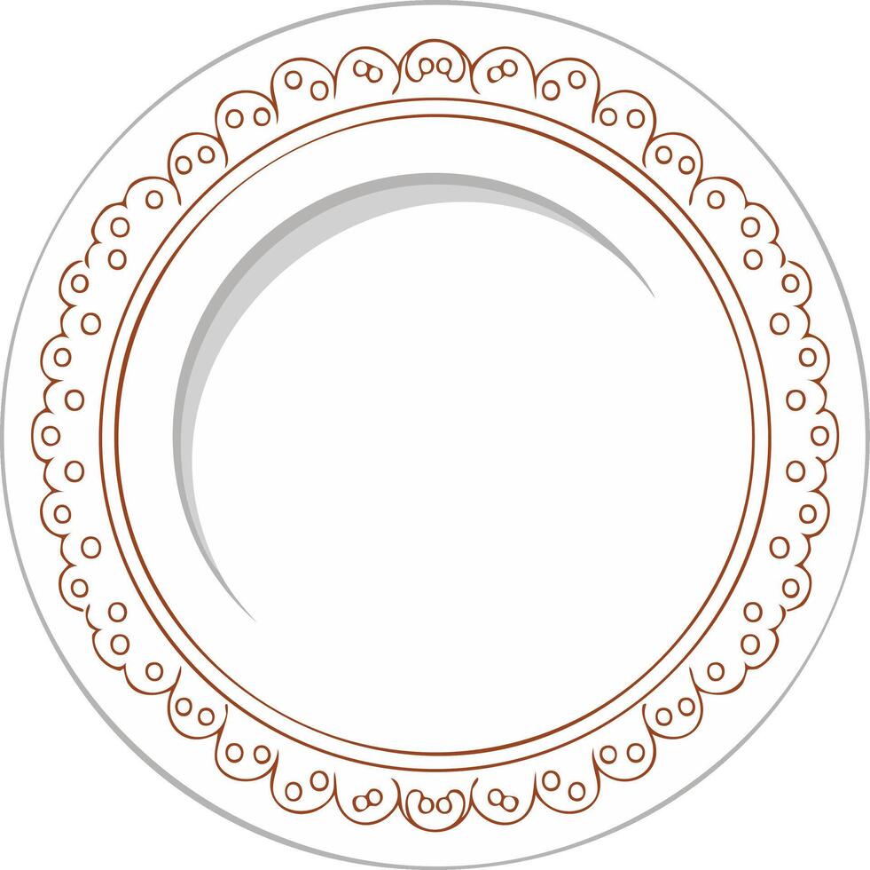 Decorative Round Plate with Intricate Brown Border Pattern and Subtle Shadow Pro Vector