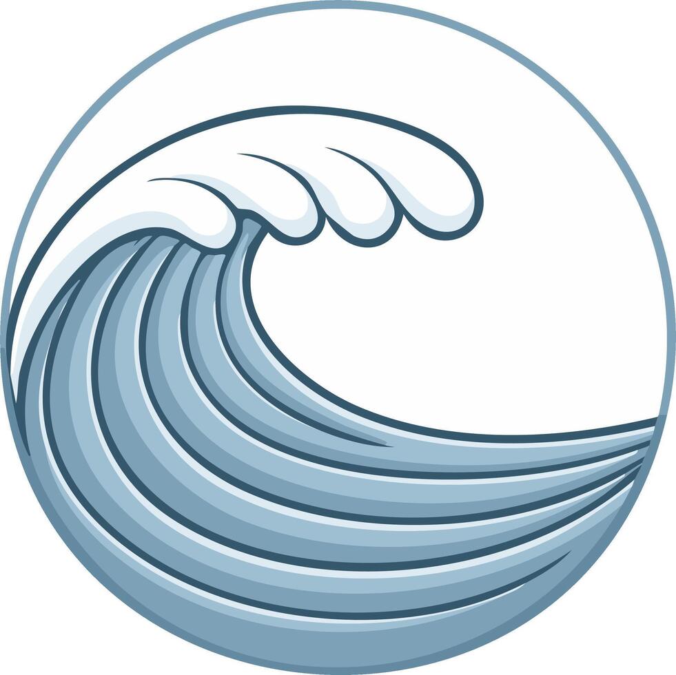 Stylized cartoon wave crests within circular frame symbolizes ocean strength and simplicity in aquatic themed graphics Pro Vector