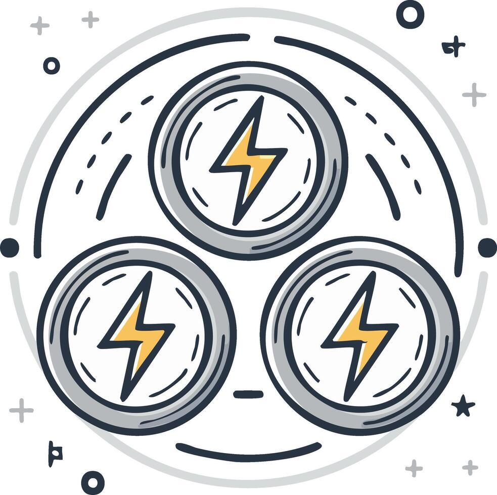 Three lightning bolt symbols within circles in a circular composition with decorative elements Pro Vector