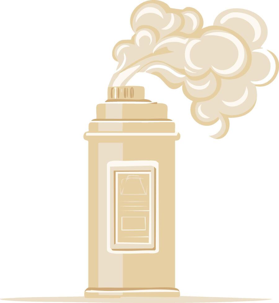 Beige aerosol paint can emitting smoke and fumes creating an atmospheric effect against a plain backdrop ideal for graphic design Pro Vector