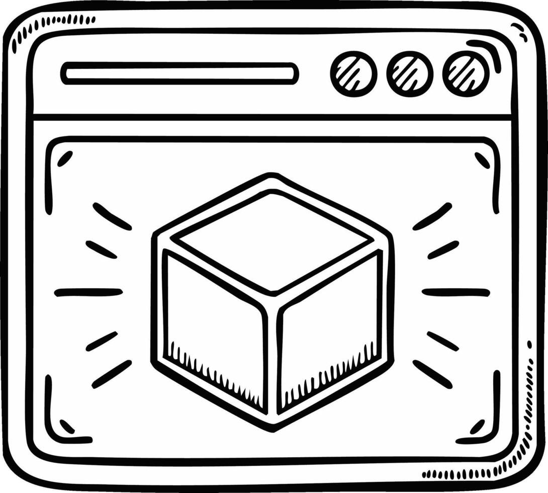 Computer window with cube icon and sunburst effect in cartoon style Pro Vector