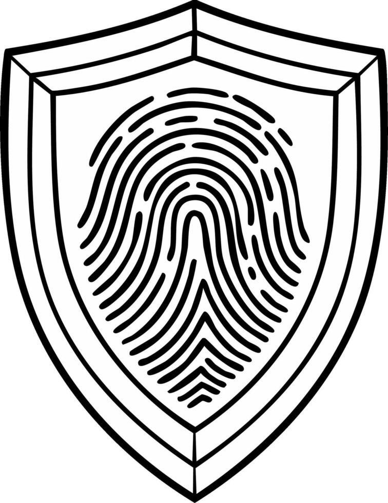 Fingerprint inside shield icon security authentication concept Pro Vector