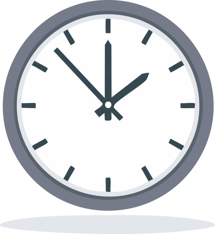 Minimalist round analog wall clock icon showing the time. Simple flat illustration for schedule and deadline concepts Pro Vector